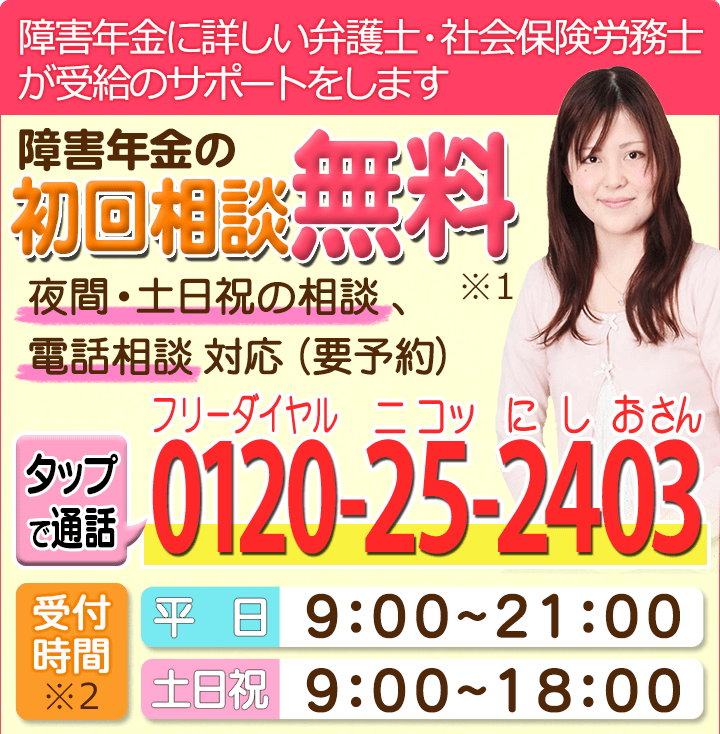 当法人には、障害年金に強い弁護士が多数在籍しておりますので、障害年金でお困りの方は、お気軽にお問い合わせください。