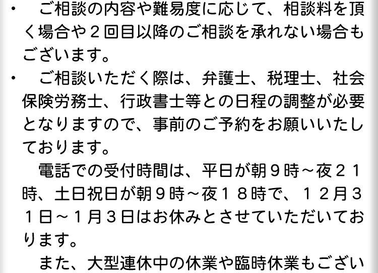 もし、事務所ではなく、自宅などからのご相談をご希望でしたら、電話・オンラインを利用いただきご相談いただくことも可能です。