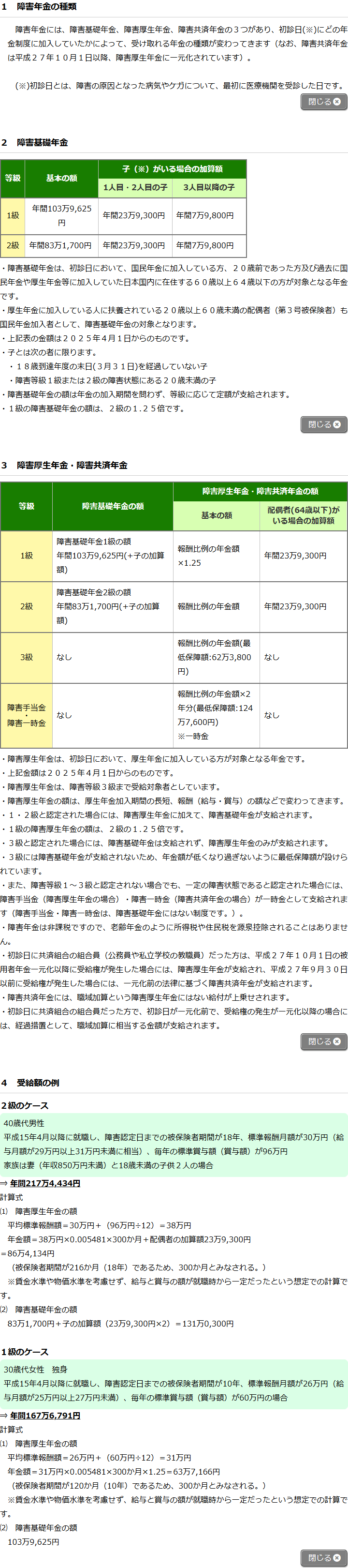 そして、障害年金の種類、等級によって、障害年金の金額が異なります。