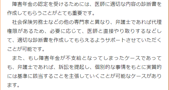 障害年金については、弁護士や社労士が代理して申請を行うことが可能です。