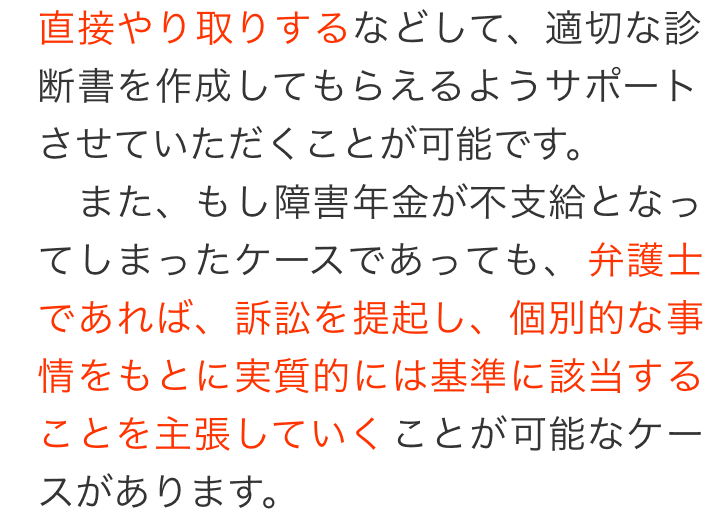 私たちにご依頼いただければ、そのポイントを熟知した社労士や弁護士がサポートさせていただきますので、スムーズかつ適切に障害年金の手続きをすることが可能です。
