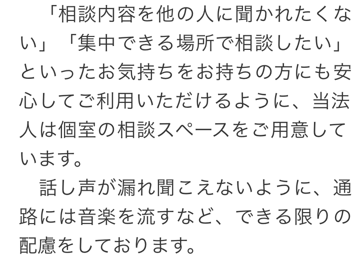 ご相談いただきやすい環境となっておりますので、どうぞ安心してご利用ください。