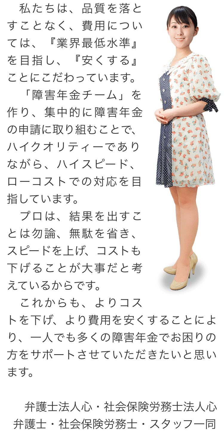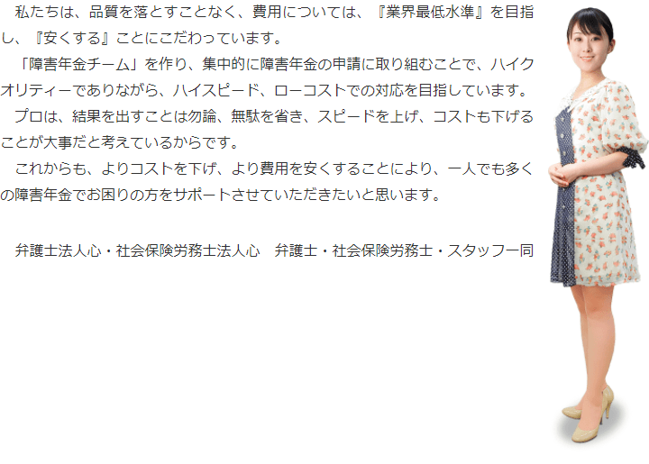 トップその他費用の安さにこだわる理由 階層構造▼ その他(目次) 費用の安さにこだわる理由 その他(目次)その他トップ共通バナー※消さない障害年金無料診断サービス初めて障害年金を申請の方へ手続きの流れ代表メッセージ電話・テレビ電話相談について電話・テレビ電話相談の流れ心グループニュース(新着情報)お客様相談室費用の安さにこだわる理由関連リンクプライバシーポリシー 受付時間 平日 9時~21時、土日祝 9時~18時 夜間・土日祝の相談も対応します (要予約) 所在地 〒120-0034 東京都足立区千住2-4オカバツインタワービル イースト5F 0120-25-2403 お問合せ・アクセス・地図