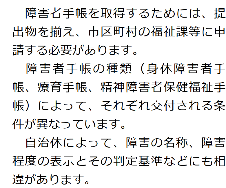 トップお役立ち情報障害者手帳について 階層構造▼ お役立ち情報(目次) 障害者手帳について1 障害者手帳とは2 障害者手帳を取得するメリット3 障害者手帳の申請手続きと支給条件 1 障害者手帳とは2 障害者手帳を取得するメリット3 障害者手帳の申請手続きと支給条件 お役立ち情報(目次)お役立ち情報トップ障害年金の相談窓口障害年金を受給するためのポイント障害年金で必要な書類不支給通知が届いた場合障害年金に所得制限はあるのか働きながら障害年金を受給できる場合障害年金の種類関節リウマチで障害年金を申請する場合のポイント額改定請求について障害者手帳について 受付時間 平日 9時~21時、土日祝 9時~18時 夜間・土日祝の相談も対応します (要予約) 所在地 〒120-0034 東京都足立区千住2-4オカバツインタワービル イースト5F 0120-25-2403 お問合せ・アクセス・地図